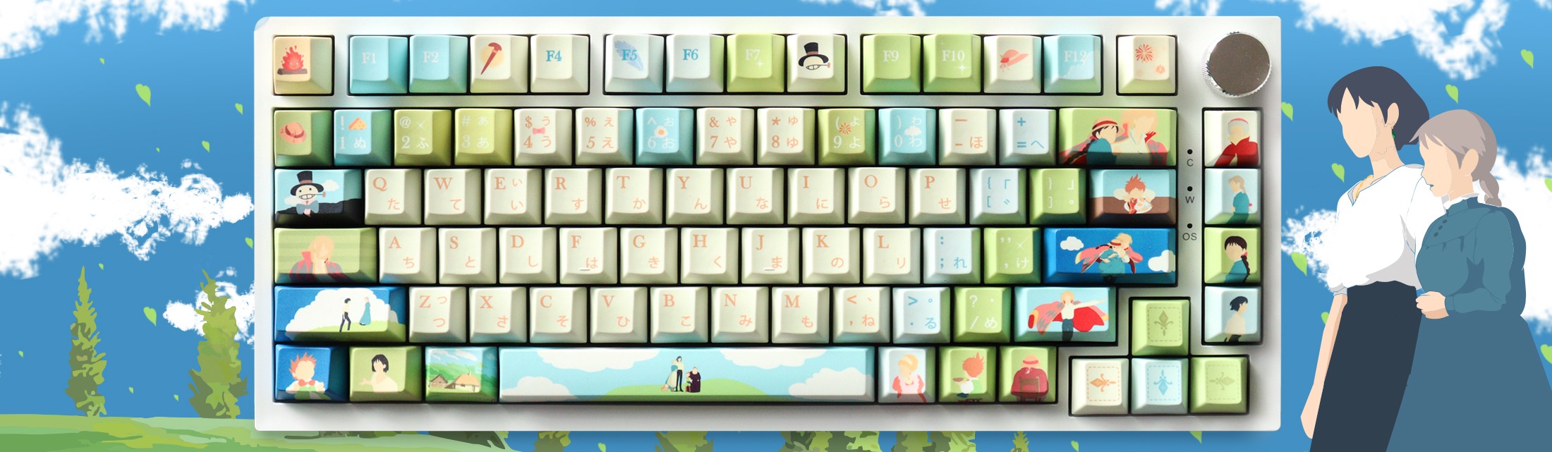 Anime JP Moving Castle Sublimación Keycaps PBT 130 Keys Cherry MX Switch GH60/GK61/GK64/84/87/96/104/108/980 Teclado mecánico